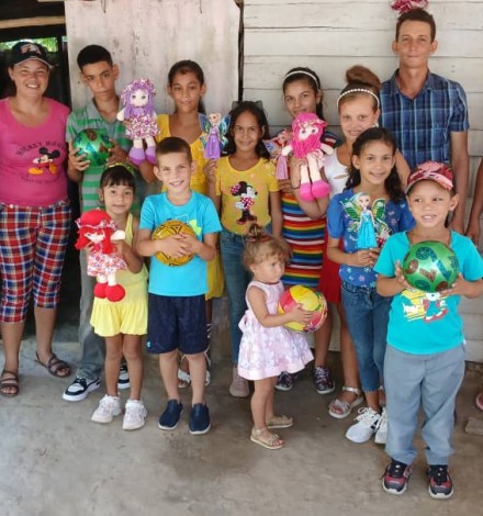 Yaima in the white hat on the left with some of the children she is ministering to. We provided toys for these children through Hannah’s Toys of Hope.