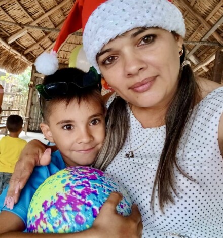 Yaima with one of the children who received a gift