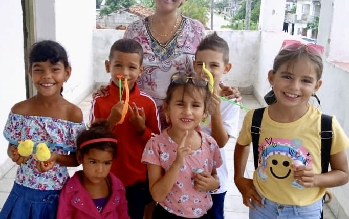 Yaima in the white hat on the left with some of the children she is ministering to. We provided toys for these children through Hannah’s Toys of Hope.
